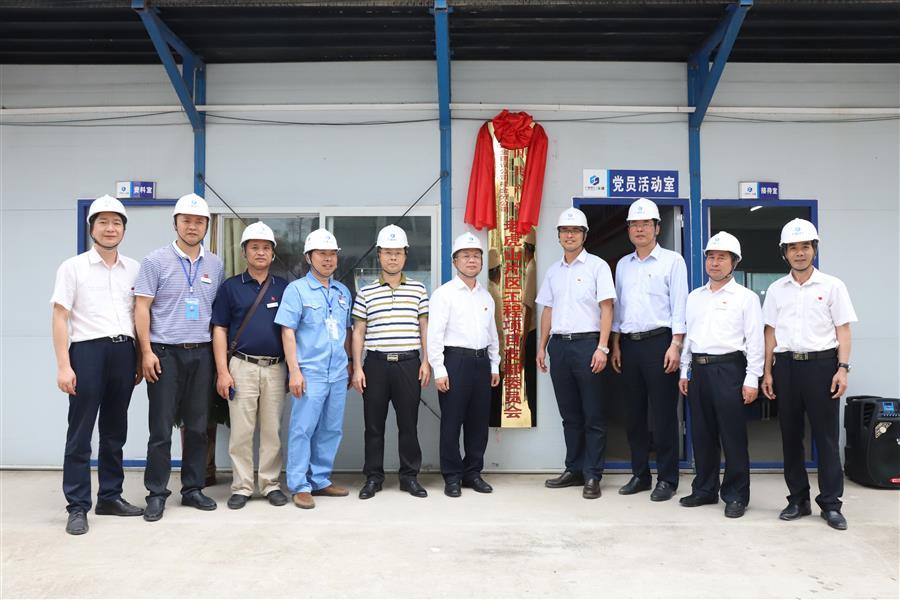賴海標(biāo)與項(xiàng)目黨支部書記談笑共同為支部成立揭牌
