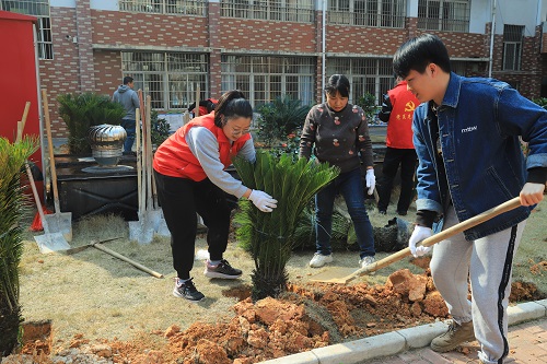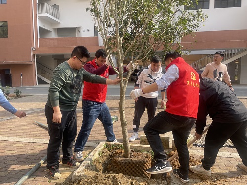 活動(dòng)中,基礎(chǔ)分公司黨員志愿者與銀山小學(xué)教職工熱情高漲,分工協(xié)作,有的松土挖坑、有的扶苗填土、有的澆水育苗,現(xiàn)場(chǎng)一派熱火朝天的忙碌景象。在大家的共同努力下,本次活動(dòng)共種植山茶花、鐵樹、桂花樹等樹苗60多棵。