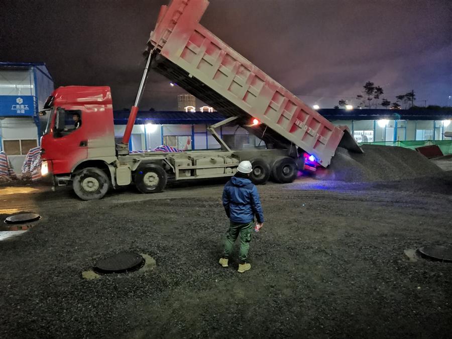 為全力沖刺四季度,項目部實行“快馬加鞭、保質(zhì)保量、人停機不停、晝夜料不停!”的搶工模式,在保證安全和質(zhì)量的前提下,項目部全體成員搶抓施工黃金期,全力以赴推進(jìn)項目建設(shè)。為加快項目建設(shè),項目部反復(fù)討論研究制定了科學(xué)的施工計劃,合理安排人力物力。面對晚間要拉運回填土方和石料的問題,項目部采取人員輪流值班,料來人在,統(tǒng)一指揮的措施,做到合理配置堆放,減少二次運輸,提高工作效率。