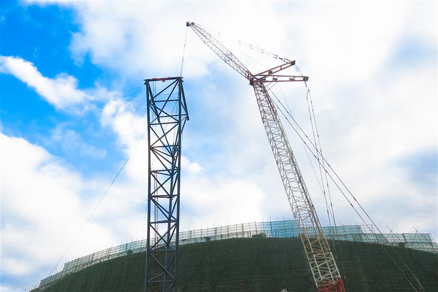 靖西市乒乓主題體育公園項(xiàng)目鋼結(jié)構(gòu)首榀桁架柱順利吊裝