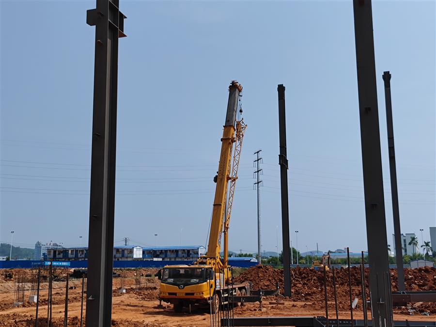 為了7#標(biāo)準(zhǔn)廠房順利封頂?shù)哪繕?biāo),項目部自我加壓,立下軍令狀,在項目掀起大干快上的趕工熱潮。項目部及時協(xié)調(diào)組織土石方、土建、鋼構(gòu)、水電等施工隊伍進場,確保施工順利進行;管理人員與施工隊倒排工期,發(fā)揚“5+2”“白加黑”連續(xù)作戰(zhàn)精神,凝心聚力,奮力沖刺。