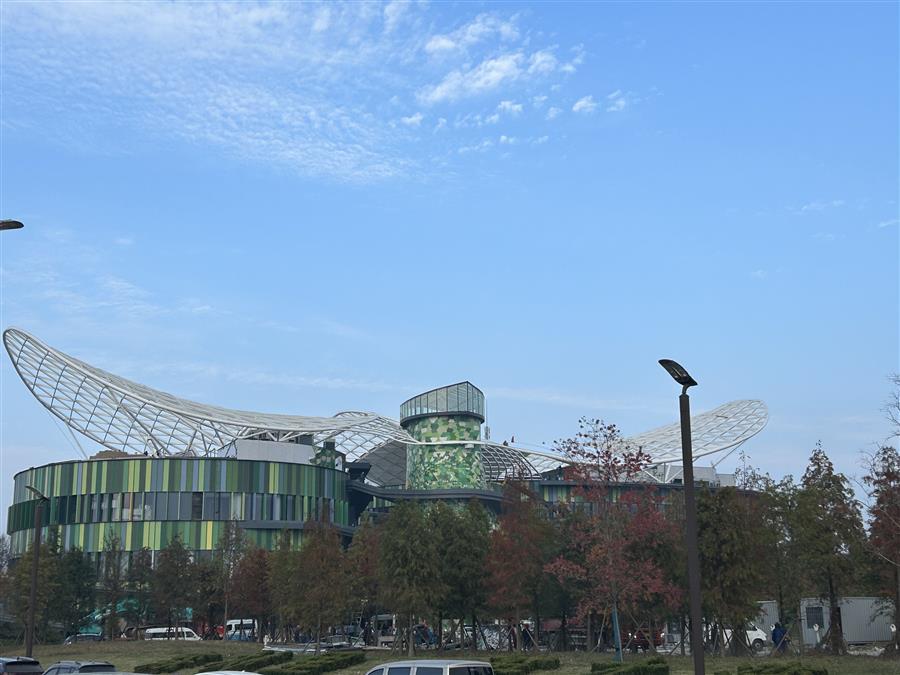 據(jù)悉,該項目位于江蘇省東臺市黃海森林公園內(nèi),由東區(qū)、西區(qū)及戶外休息區(qū)三部分組成,總建筑面積約1.8萬平方米,建筑高度22.77米,最大單跨跨度為45米。