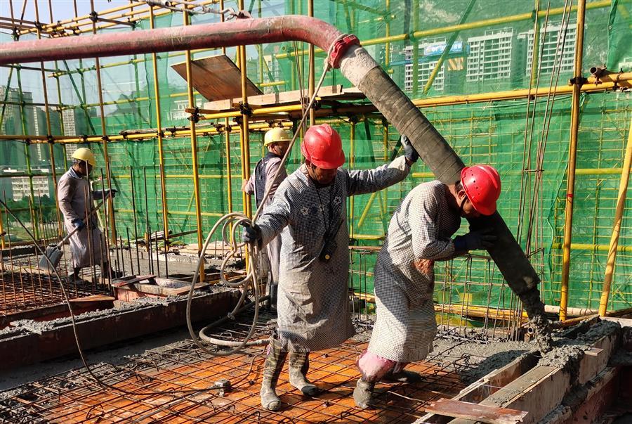 河池·澳門國際城四期工程位于河池市金城江區(qū)百旺路10號,總建筑面積13.76萬平方米,由5個單體建筑、地庫,以及配套設(shè)施工程等部分構(gòu)成。目前,3個單體建筑均已施工至結(jié)構(gòu)層8層梁板砼澆筑,項目累計完成總工程量的12.8%。