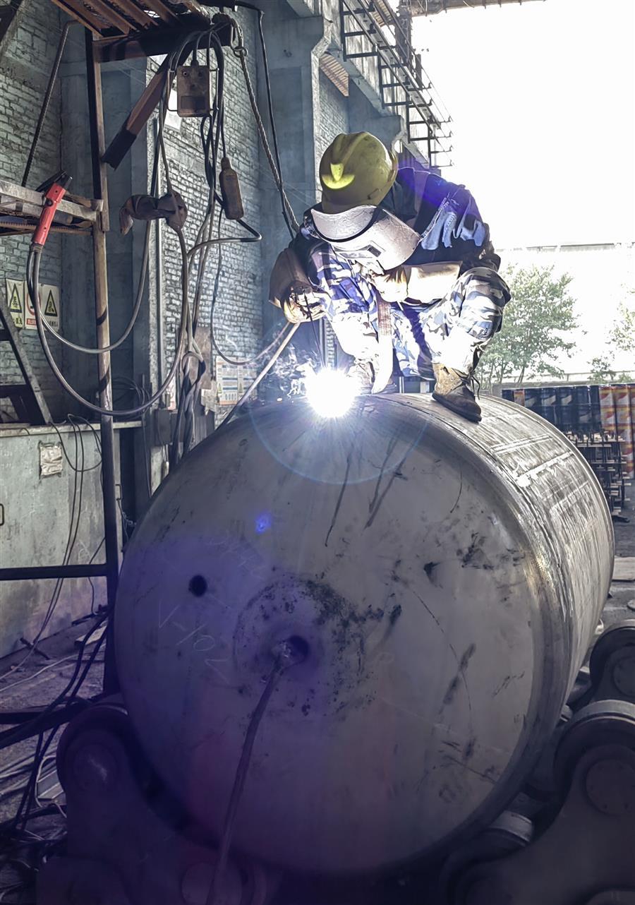 因節(jié)前承接的廣西柳鋼環(huán)保公司鋼渣廠1#廠房氣窗及3-11#柱屋面鋼結(jié)構(gòu)與彩瓦更換工程的鋼結(jié)構(gòu)預(yù)制加工、東莞市鵬錦機(jī)械科技有限公司15臺(tái)壓力容器制作需要在春節(jié)后交貨,壓力容器制造廠生產(chǎn)車間的施工人員、管理人員在大年初四就開(kāi)始進(jìn)入了緊張繁忙的工作狀態(tài)。焊接、打磨相互銜接,作業(yè)有序,全力推進(jìn)設(shè)備趕制工作,現(xiàn)場(chǎng)好不熱鬧。工人們表示,能高質(zhì)量、高效率完成好制作任務(wù),也是一種快樂(lè)。
