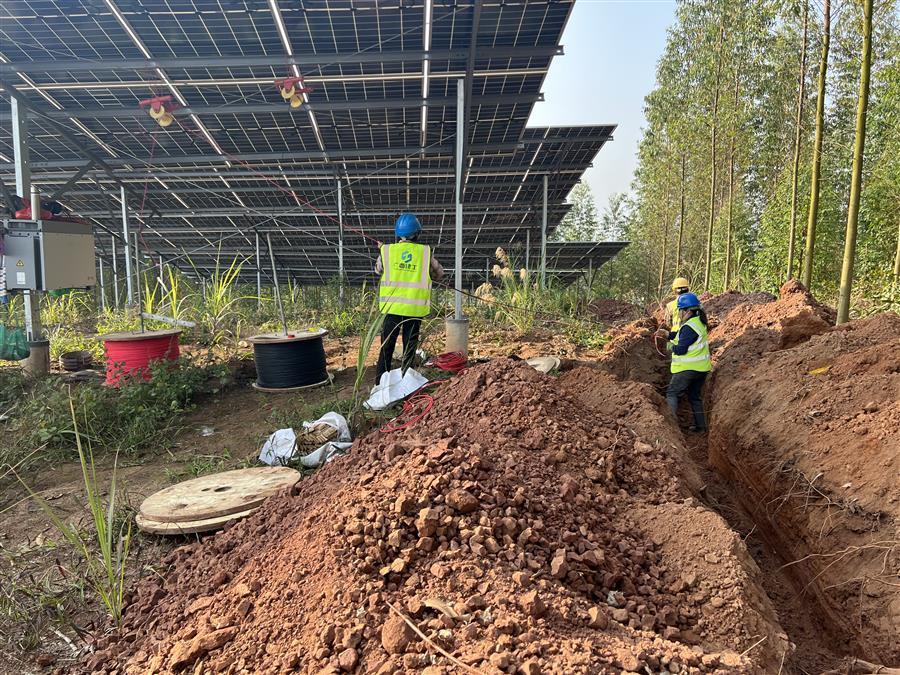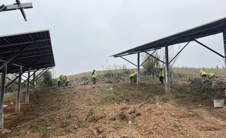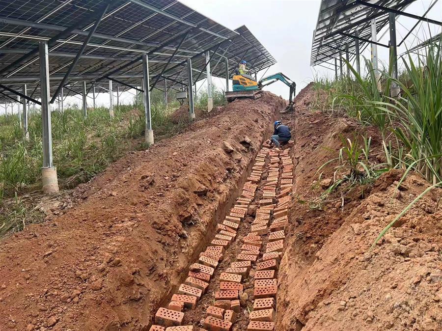 節(jié)后復工復產(chǎn)以來,項目接地網(wǎng)開挖敷設完成1235米,低壓電纜敷設完成1285米,光伏專用電纜敷設完成14760米,圍欄安裝1030米。