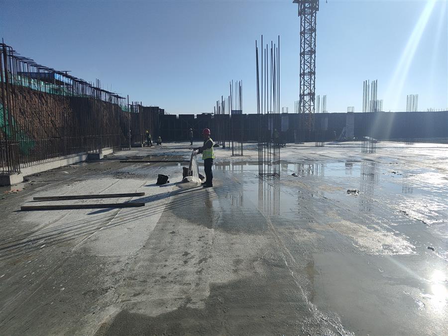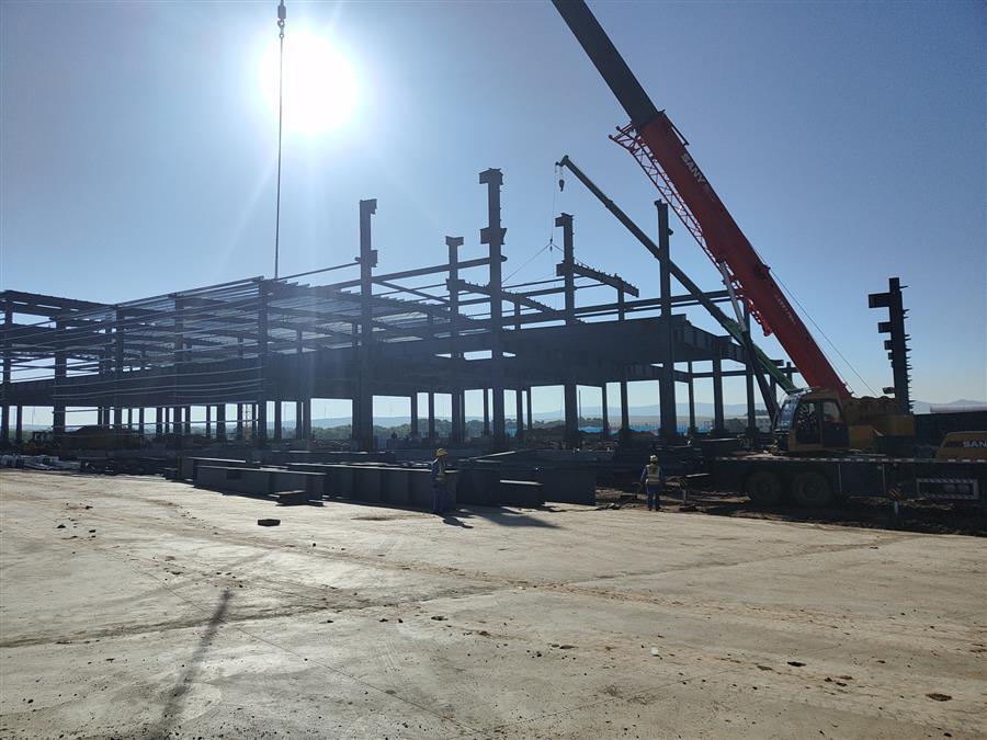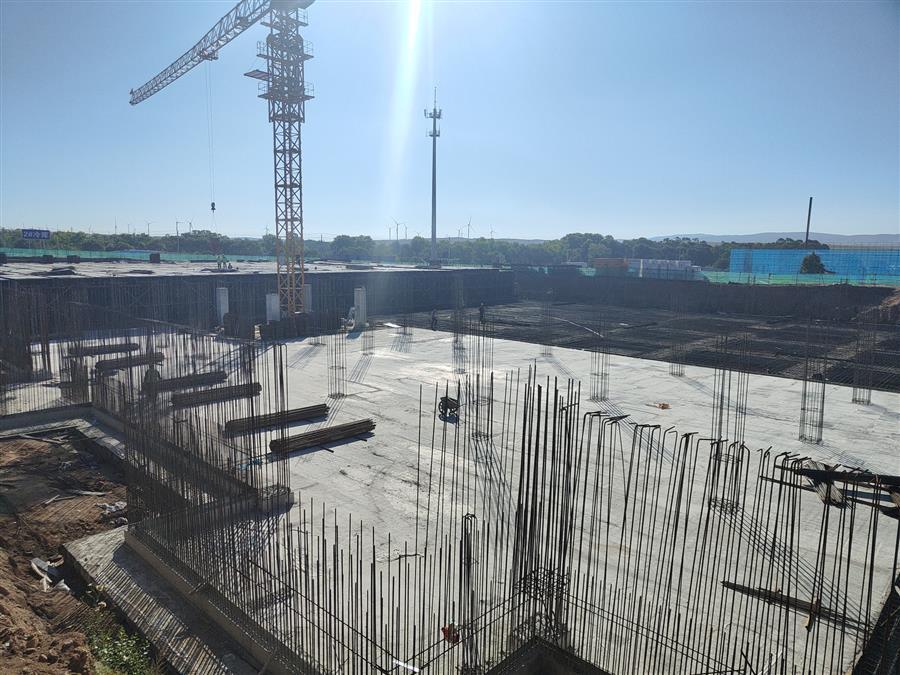 目前,該項目2#配送中心5-12軸鋼結(jié)構(gòu)完成100%,正在進行1-4軸二層鋼柱牛腿焊接、6.65米鋼梁安裝及二層鋼柱安裝。2#冷庫4-12軸交E交J軸防水板混凝土澆筑完成,正在加固13-18軸地下室頂板模板,綁扎4-12軸交A交E軸防水板鋼筋。