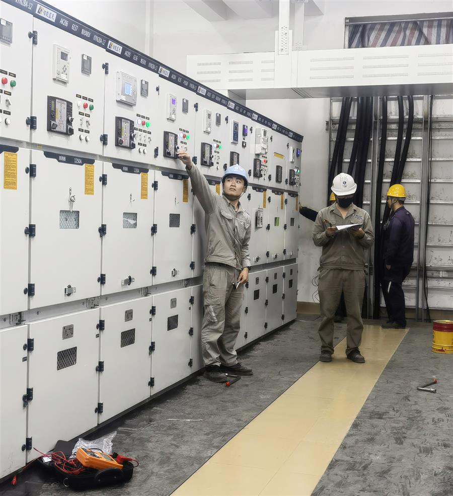 為確保按時順利送電,項目部多次組織技術(shù)人員對電氣樓進行檢查確認,特別是對高低壓柜、隔離開關(guān)等設(shè)備的功能、絕緣進行了多次檢查和測試,為保證整個送電過程安全順利進行創(chuàng)造了有利條件。