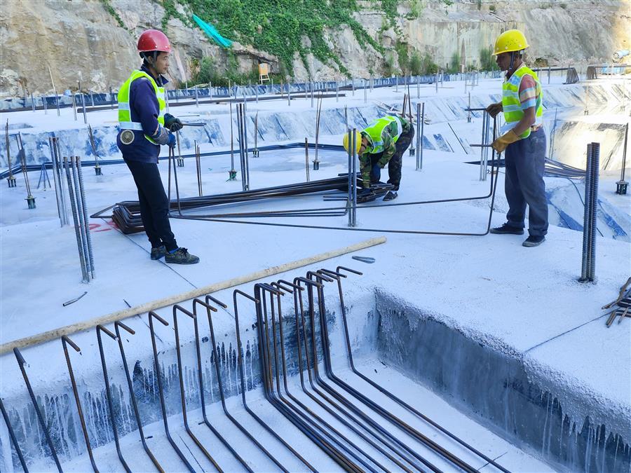 在項(xiàng)目現(xiàn)場(chǎng),工人們頂著烈日?qǐng)?jiān)守崗位。鋼筋綁扎工人一手固定住鋼筋,一手熟練地把鋼筋綁扎好;電焊工人“全副武裝”,一手舉著防護(hù)面罩,一手拿著焊槍嫻熟作業(yè);抹灰工人飛舞著抹灰刀,熟練地向墻面抹水泥砂漿;安裝工人操作電鉆將門(mén)窗穩(wěn)穩(wěn)地安裝到位……熱火朝天的大干現(xiàn)場(chǎng)依然井然有序。