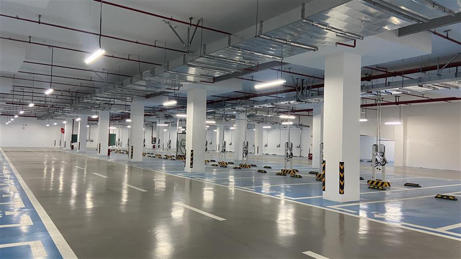 項(xiàng)目總建筑面積約2.7萬平方米,為一座兩層局部覆土式地上停車庫,建設(shè)內(nèi)容包含停車場(chǎng)、地面廣場(chǎng)鋪裝及綠化、給排水、電氣、消防等附屬工程。項(xiàng)目建成將新增600個(gè)機(jī)動(dòng)車位,其中負(fù)二層510個(gè)機(jī)動(dòng)車位,負(fù)一層78個(gè)有充電樁的新能源停車位,屋面12個(gè)無障礙車位;另外,停車庫屋面設(shè)有283個(gè)非機(jī)動(dòng)車位。綠地率為60%。停車場(chǎng)內(nèi)部空間寬敞明亮,外觀看像是地下停車庫,但實(shí)際上由于該區(qū)域地勢(shì)較低,為合理規(guī)劃,特意將停車庫設(shè)計(jì)為地上兩層局部覆土式停車庫,即在停車庫上方回填泥土,在泥土上種植綠化樹木,將車庫上方裝點(diǎn)成一個(gè)小公園。項(xiàng)目交付運(yùn)營(yíng),有效緩解三門江森林公園周邊“停車難”問題。