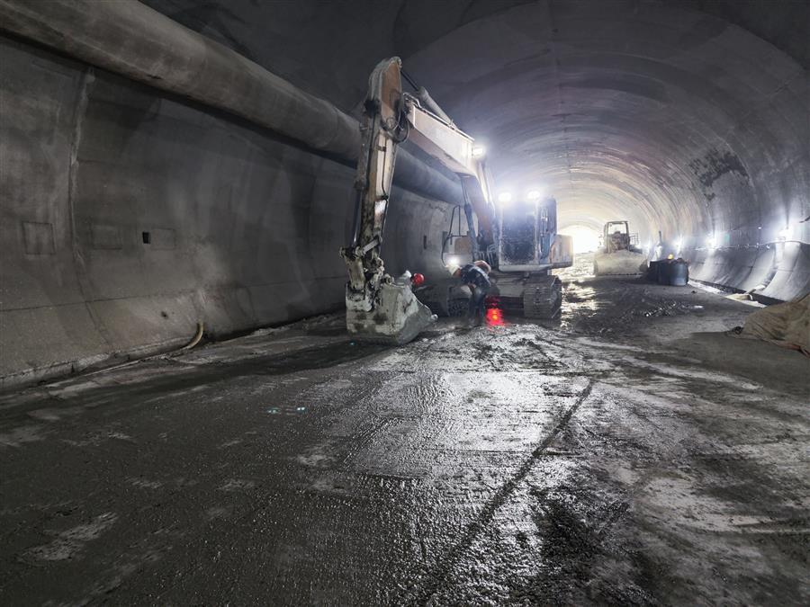 在施工現(xiàn)場,機(jī)器轟鳴,挖掘機(jī)正在對隧道明洞部分的土方進(jìn)行開挖,出渣車有序作業(yè)外運(yùn)渣土;工人們正有條不紊地焊接、搭建地連墻鋼筋籠;在隧道深處,一臺挖掘機(jī)在操作人員的操控下,正揮動著“手臂”,配合著工人在對隧道路面做清理。“為加快項目施工進(jìn)度,我們采取人員倒班、設(shè)備不停,白天晚上不間斷施工?!表椖拷?jīng)理介紹說,目前隧道工程已全面貫通,爭取在春節(jié)前完成仰拱和墻供二襯砼澆筑。