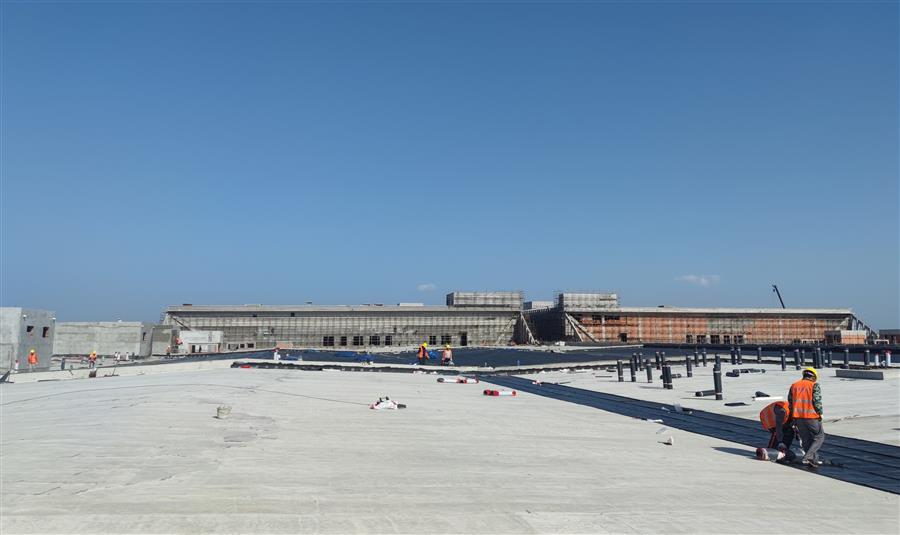 走進(jìn)50Gwh鋰電池產(chǎn)業(yè)基地(新能源電池標(biāo)準(zhǔn)化廠房)一期項(xiàng)目施工現(xiàn)場(chǎng),機(jī)器轟鳴,工程車來(lái)回穿梭,施工人員忙碌作業(yè),水電消防安裝、屋面防水卷材鋪貼、內(nèi)外墻抹灰、門窗窗框安裝、抗裂砂漿和室外管網(wǎng)路基施工等工作緊張有序地進(jìn)行中。為應(yīng)對(duì)項(xiàng)目體量大、工期緊的情況,項(xiàng)目部緊扣節(jié)點(diǎn)目標(biāo)掛圖作戰(zhàn),逐項(xiàng)細(xì)化分解工程量,量化任務(wù)清單,制定日工作進(jìn)度表,錨定目標(biāo)精準(zhǔn)發(fā)力,做到畫“圖”定責(zé)、按“圖”推進(jìn)、看“圖”指揮,實(shí)現(xiàn)以日保周、以周保月、以月保季,確保了目標(biāo)任務(wù)按序按時(shí)推進(jìn),曾以不到5個(gè)月的時(shí)間實(shí)現(xiàn)了項(xiàng)目包含的15個(gè)單體工程全面封頂。