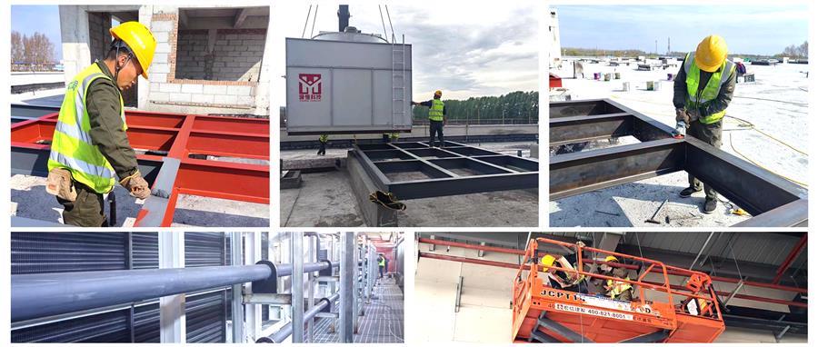 冷風機設備入場后,項目部立即有序開展焊接吊風機平臺工作,完成平臺焊接后,項目部合理安排進度計劃,實施進度管理。經過項目部全體人員的連續(xù)奮戰(zhàn),項目4號庫12臺冷風機已順利安裝到位,管道安裝完成80%;1號庫完成4臺蒸發(fā)式冷凝器安裝工作,下一步進行管道安裝。