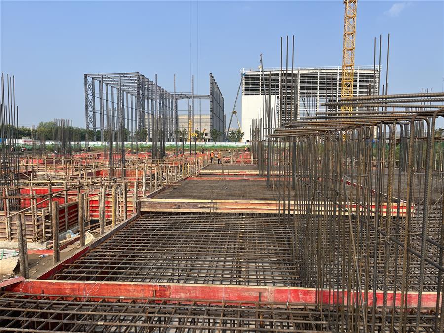 為確保項目建設(shè)順利開展,項目部制定科學(xué)的施工方案,合理安排施工時間,認(rèn)真抓好安全生產(chǎn)工作,嚴(yán)把質(zhì)量關(guān)。目前,項目已完成了3#高標(biāo)庫基礎(chǔ)混凝土墊層、4#分揀中心及6#冷庫的 CFG 樁、2#分揀中心基礎(chǔ)混凝土墊層等施工內(nèi)容,2#高標(biāo)庫基礎(chǔ)擋墻鋼筋綁扎已完成100%,模板安裝已完成70%。