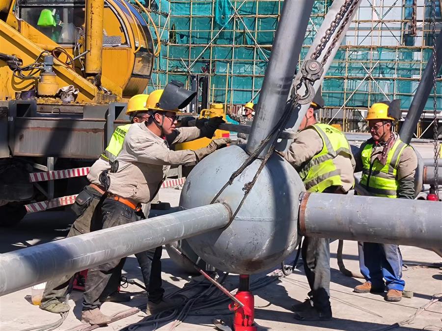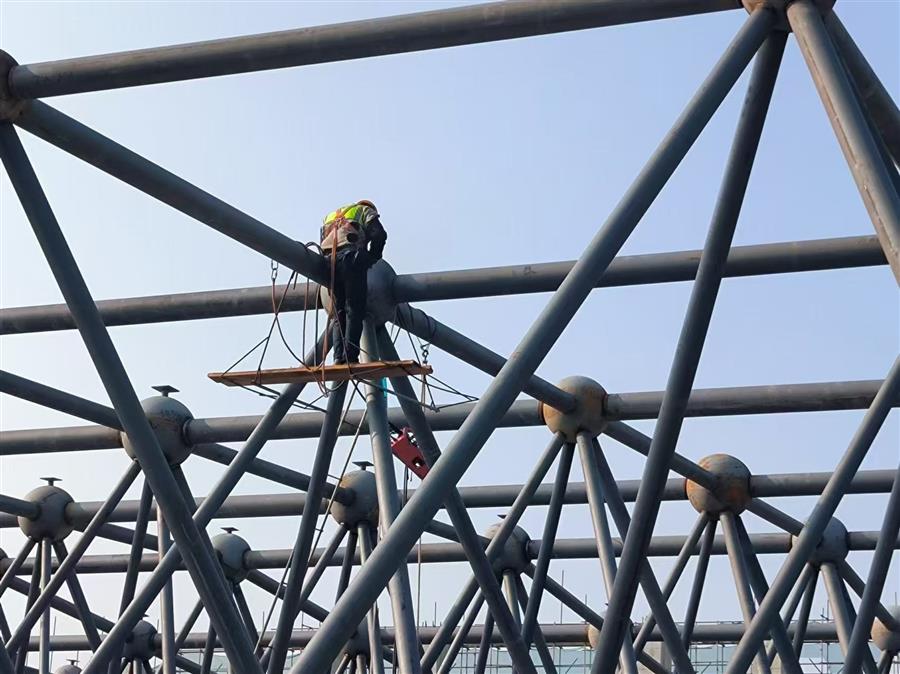 項目總建筑面積4.46萬平方米,建設內容為文化會展中心和英德茶文化博物館(含紅茶研發(fā)中心、檢測中心和交易中心)等。目前,項目正在進行網(wǎng)架拼裝、加焊、焊接囗打磨、鋼球刷漆等工作,鋼結構施工進度為65%。