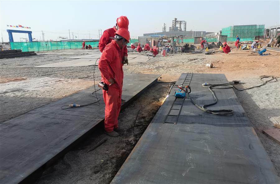 為了保障工程進(jìn)度,在確保安全和質(zhì)量的前提下,建設(shè)者們?nèi)找箠^戰(zhàn)在項(xiàng)目工地,全力加快項(xiàng)目建設(shè)。目前,項(xiàng)目整體進(jìn)度完成55%,廠房配套臨建主體設(shè)施完成65%,1500方儲油罐體焊接已完成10個,完成項(xiàng)目整體罐體焊接55%。剩余工藝管道配套管網(wǎng)正在場外工廠緊鑼密鼓地進(jìn)行生產(chǎn)加工,隨后運(yùn)到廠區(qū)進(jìn)行拼接組裝。