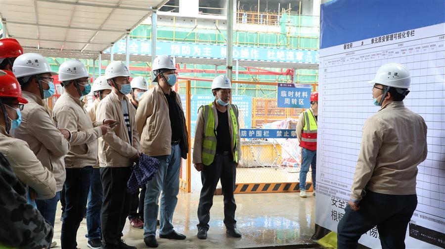 會前,參會人員一同進(jìn)入磐龍府項目現(xiàn)場進(jìn)行觀摩學(xué)習(xí)。