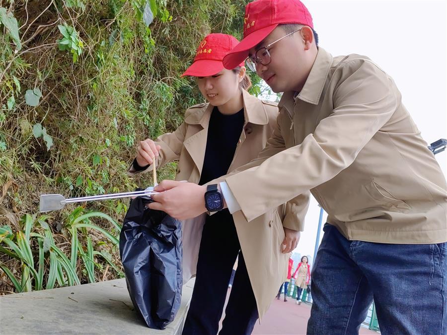 活動(dòng)中,志愿者們手持垃圾鉗、垃圾袋,沿著環(huán)江濱水步道開(kāi)展“垃圾清零”活動(dòng),仔細(xì)地?fù)焓把匕兜睦?,維護(hù)江堤的環(huán)境衛(wèi)生。