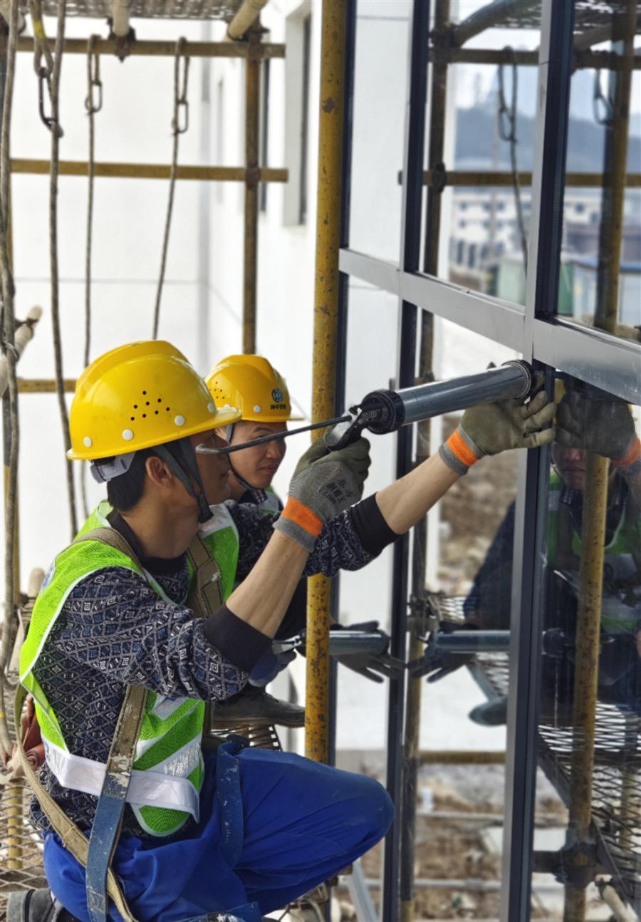 “明德中學(xué)項(xiàng)目正在進(jìn)行宿舍樓外墻涂料和鋁合金窗玻璃膠施工,及綜合體育館和宿舍樓天面打磨等施工;明德小學(xué)項(xiàng)目正在進(jìn)行2#、3#綜合教學(xué)樓主體施工,及午托樓砌筑、綜合體育館網(wǎng)架屋面等施工?!泵鞯轮行W(xué)項(xiàng)目管理人員說(shuō)。兩個(gè)學(xué)校項(xiàng)目復(fù)工復(fù)產(chǎn)后,項(xiàng)目人員通力合作、全力以赴,各種施工機(jī)械開(kāi)足馬力、連班作業(yè),保障各項(xiàng)工作有序開(kāi)展,確保學(xué)校民生項(xiàng)目按期交付。