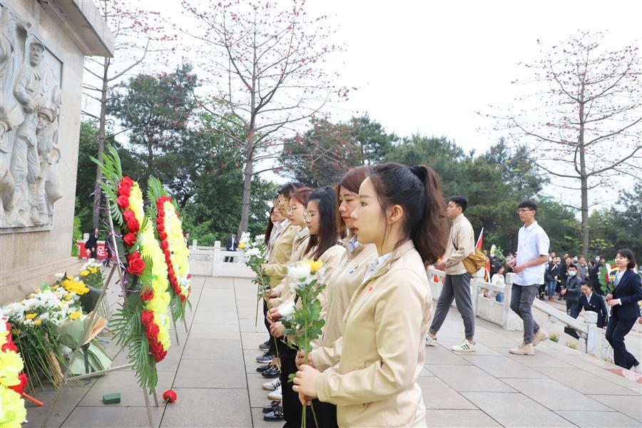 宣誓后,團(tuán)員青年在烈士陵園開展《學(xué)史愛國 青年力行》主題微團(tuán)課,回顧中國共產(chǎn)黨帶領(lǐng)人民群眾浴血奮戰(zhàn)、進(jìn)行艱苦卓絕斗爭的革命歷程,追憶崢嶸歲月,緬懷革命英烈,致敬百年征程。隨后,團(tuán)員青年有序來到烈士紀(jì)念碑基座前,瞻仰紀(jì)念碑,將一朵朵鮮花整齊擺放在紀(jì)念碑基座上,向烈士致以崇高的敬意。